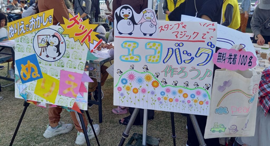 尾道刑務所は受刑者の社会復帰に向けての一助になる展示会、第44回「おのみち矯正展」を11月3日(金)駅前港湾緑地において開催した。尾道地区保護司会は協賛イベントとしてオリジナルエコバッグ作りや子どもを対象にした塗り絵コーナー、更生保護女性会はうどんの販売とバザーを出店した。