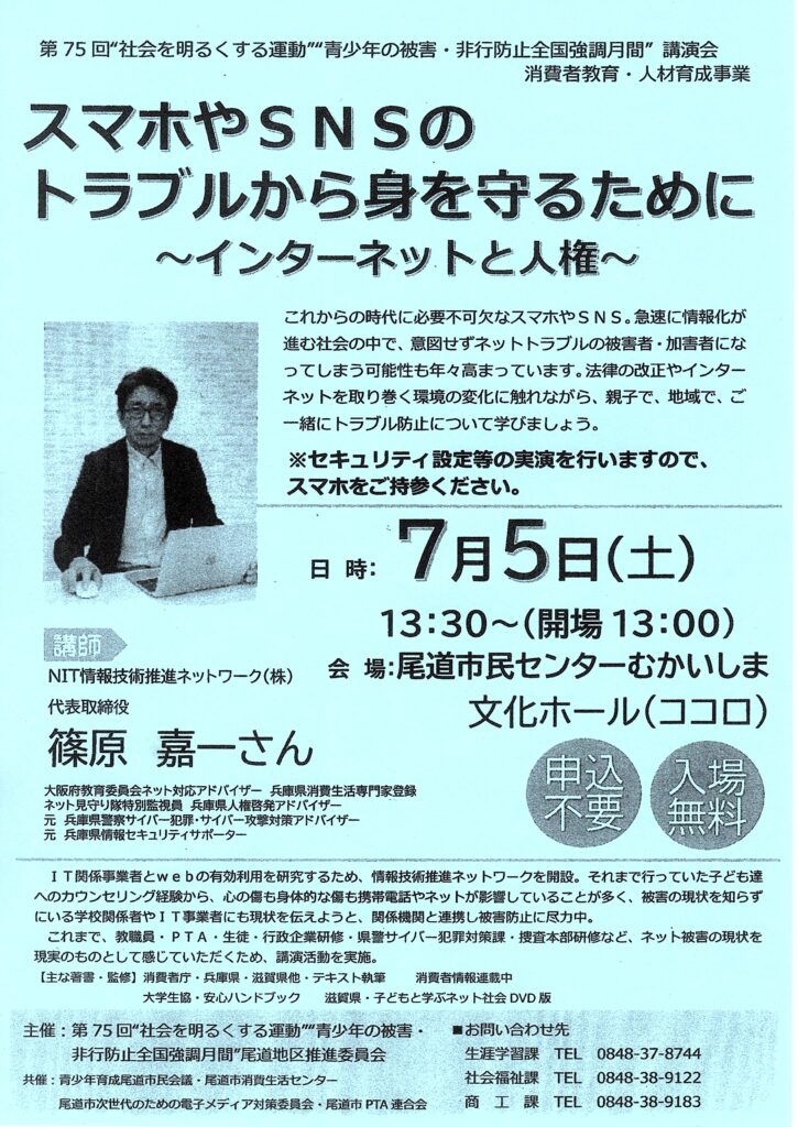 ※セキュリティ設定等の実演を行いますのでスマホをご持参ください。