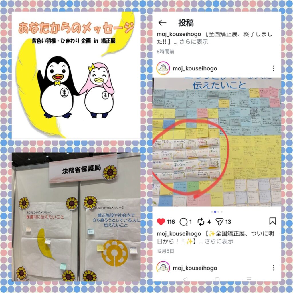 保護局ブースでは「あなたからのメッセージ」として「保護司などの更生保護ボランティア」「矯正施設や社会内で立ち直ろうとしている人」に伝えたい言葉を各地の矯正展で募集していました。
