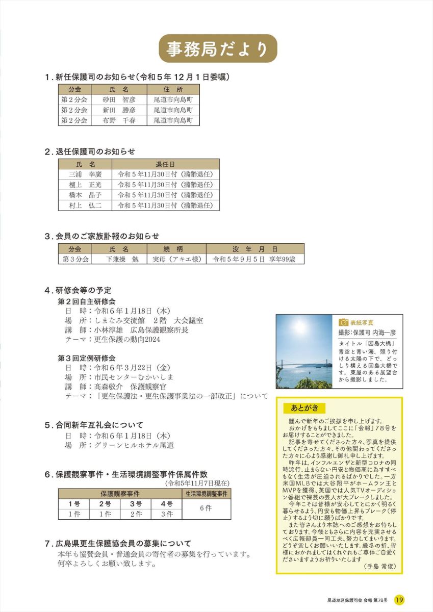 「尾道地区保護司会 会報」を閲覧、ダウンロードできます。
