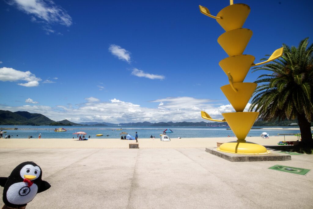 瀬戸田サンセットビーチは、生口島西岸の自然を生かした海浜公園です。遠浅で波も穏やかな全長約800mのビーチです。「日本の水浴場88選」や「日本の夕日100選」にも認定されており、その名の通り美しい夕日が見られるスポットです。家族連れやカップルにも人気で、ビーチのすぐそばをしまなみ海道の自転車道が通っておりサイクリストの休憩スポットにもなっています。